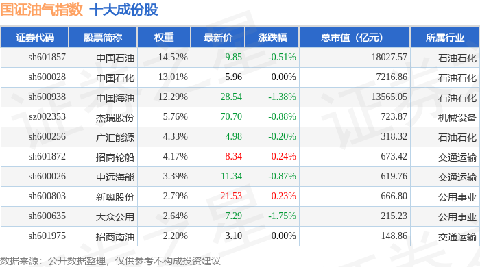 近10日内国证油气(399439)指数成份股做了调整,新纳入了3只股票。