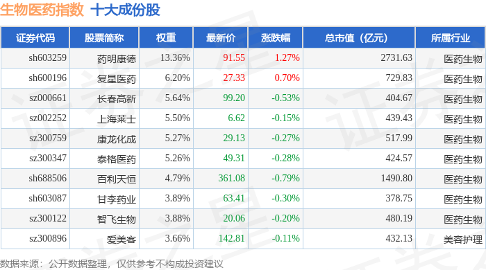 近10日内生物医药(399441)指数成份股做了调整,新纳入了1只股票。