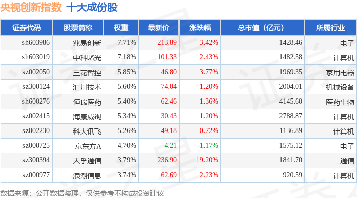 证券之星消息,12月8日,央视创新(399551)指数报收于10238.48点,涨2.48%,成交791.9亿元,换手率2.34%。当日该指数成份股中,上涨的有35家,天孚通信以19.2%的涨幅领涨,下跌的有13家,双鹭药业以2.41%的跌幅领跌。