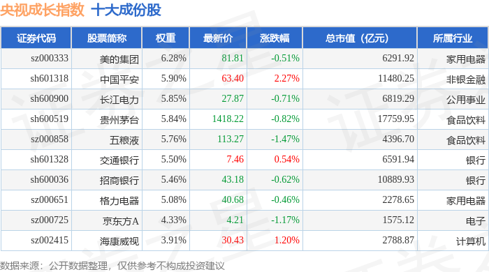 资金流向方面,央视成长(399552)指数成份股当日主力资金净流出合计27.4亿元,游资资金净流入合计13.94亿元,散户资金净流入合计13.46亿元。成份股资金流向详情见下表:
