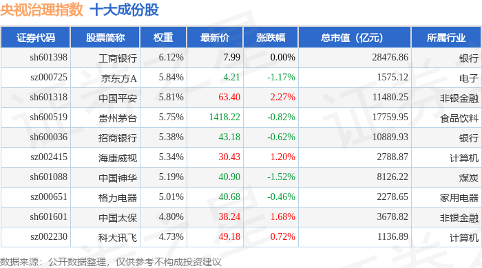 资金流向方面,央视治理(399554)指数成份股当日主力资金净流出合计20.62亿元,游资资金净流入合计10.03亿元,散户资金净流入合计10.59亿元。成份股资金流向详情见下表:
