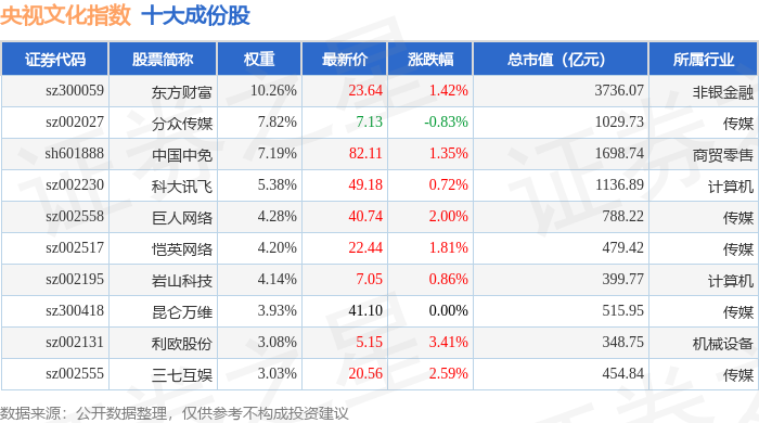近10日内央视文化(399557)指数成份股做了调整,新纳入了1只股票。