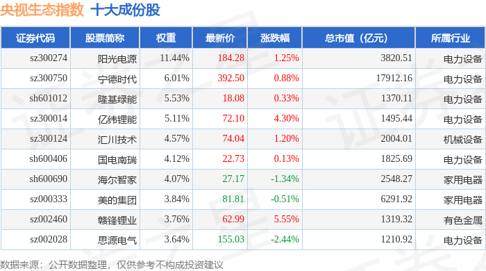近10日内央视生态(399556)指数成份股做了调整,新纳入了8只股票。