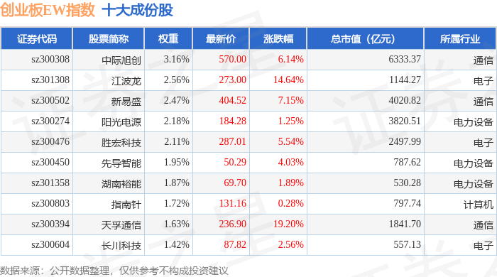 近10日内创业板EW(399635)指数成份股做了调整,新纳入了8只股票,剔除了8只股票。