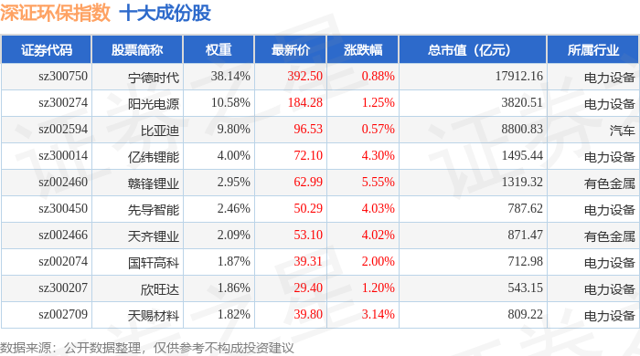 证券之星消息,12月8日,深证环保(399638)指数报收于7585.6点,涨1.59%,成交688.23亿元,换手率1.26%。当日该指数成份股中,上涨的有29家,迈为股份以17.47%的涨幅领涨,下跌的有10家,博源化工以2.99%的跌幅领跌。