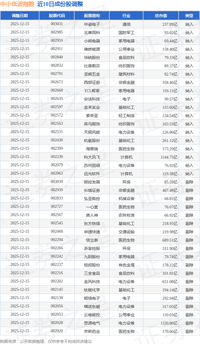 近10日内中小低波(399663)指数成份股做了调整,新纳入了19只股票,剔除了19只股票。