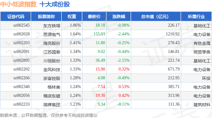 中小低波(399663)指数十大成份股详情如下: