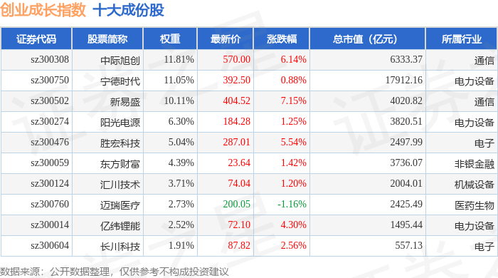 证券之星消息,12月8日,创业成长(399667)指数报收于5424.75点,涨3.21%,成交1727.58亿元,换手率3.13%。当日该指数成份股中,上涨的有38家,天孚通信以19.2%的涨幅领涨,下跌的有11家,安克创新以2.41%的跌幅领跌。