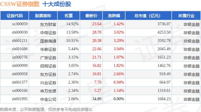 近10日内CSSW证券(399707)指数成份股做了调整,新纳入了1只股票。