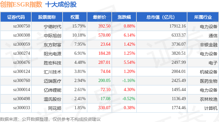 创指ESGR(470028)指数十大成份股详情如下: