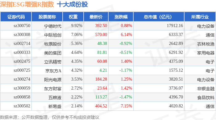 深指ESG增强R(470032)指数十大成份股详情如下: