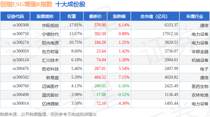 创指ESG增强R(470034)指数十大成份股详情如下: