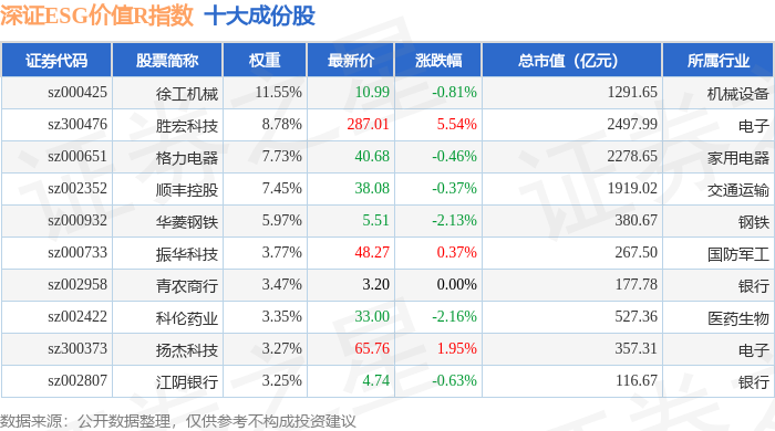 深证ESG价值R(470061)指数十大成份股详情如下: