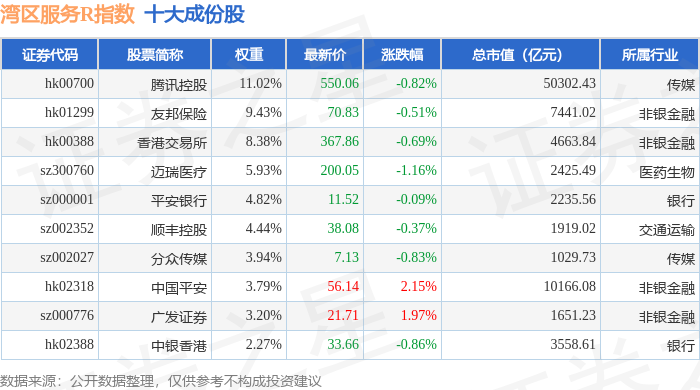 湾区服务R(480011)指数十大成份股详情如下: