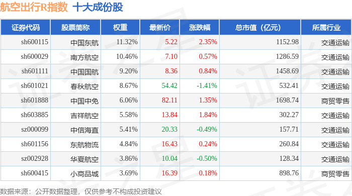 近10日内航空出行R(480059)指数成份股做了调整,新纳入了4只股票。