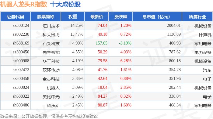 机器人龙头R(480071)指数十大成份股详情如下: