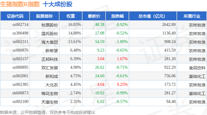 近10日内生猪指数R(480073)指数成份股做了调整,新纳入了4只股票。