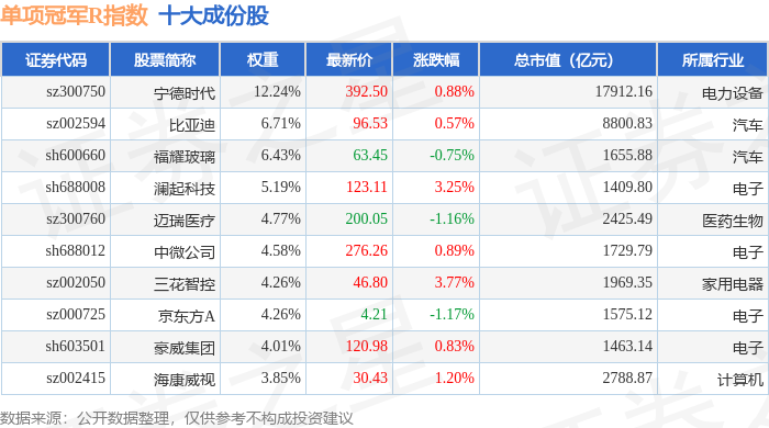 单项冠军R(480150)指数十大成份股详情如下: