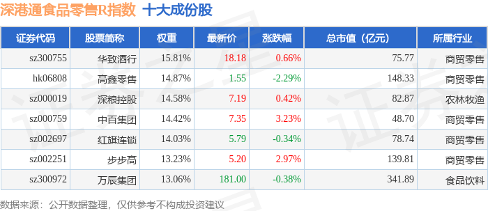 深港通食品零售R(483037)指数十大成份股详情如下: