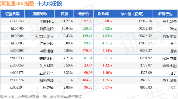 深港通50R(483091)指数十大成份股详情如下: