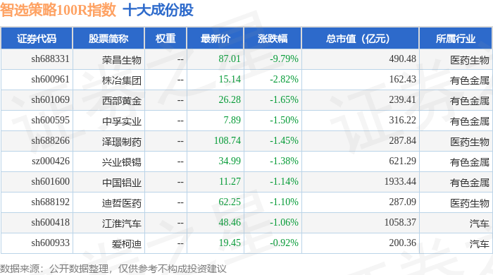 智选策略100R(489015)指数十大成份股详情如下: