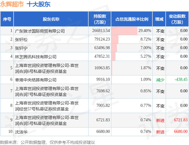 根据永辉超市2025年三季报公布的十大股东详情如下: