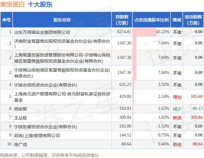 根据索宝蛋白2025年三季报公布的十大股东详情如下: