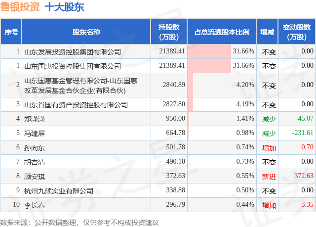 根据鲁银投资2025年三季报公布的十大股东详情如下: