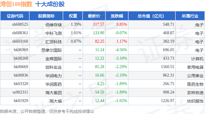 湾创100(980001)指数十大成份股详情如下: