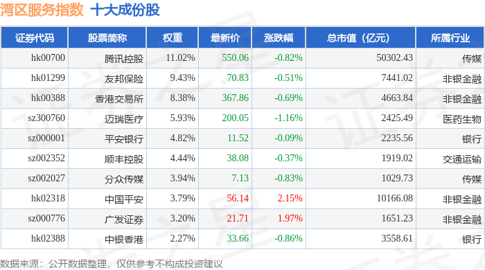近10日内湾区服务(980011)指数成份股做了调整,新纳入了1只股票。