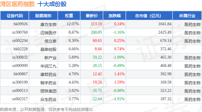 资金流向方面,湾区医药(980013)指数成份股当日主力资金净流出合计4.08亿元,游资资金净流入合计473.34万元,散户资金净流入合计4.03亿元。成份股资金流向详情见下表: