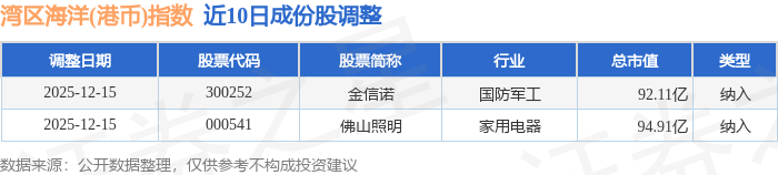 近10日内湾区海洋(港币)(980020)指数成份股做了调整,新纳入了2只股票。