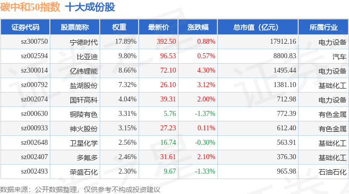 碳中和50(980021)指数十大成份股详情如下: