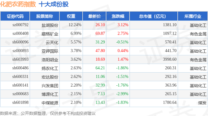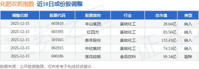近10日内化肥农药(980035)指数成份股做了调整,新纳入了4只股票,剔除了1只股票。