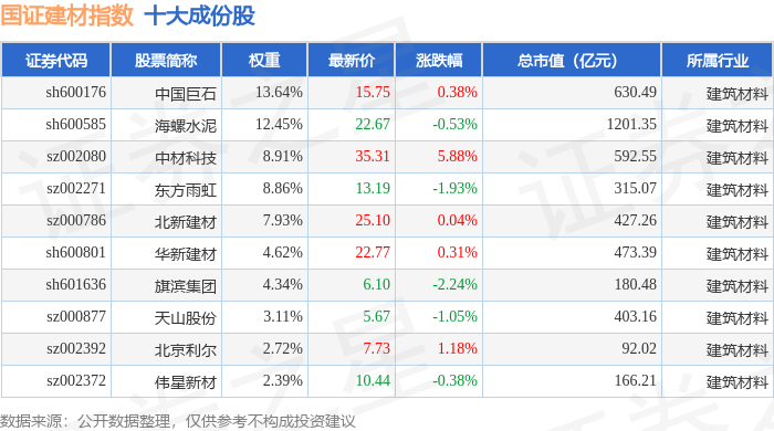 近10日内国证建材(980048)指数成份股做了调整,新纳入了3只股票。