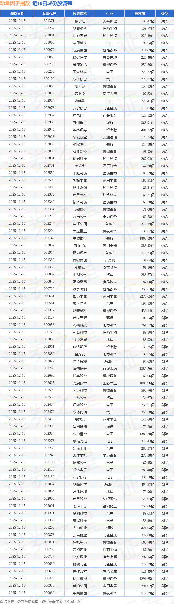 近10日内动量因子(980057)指数成份股做了调整,新纳入了40只股票,剔除了40只股票。