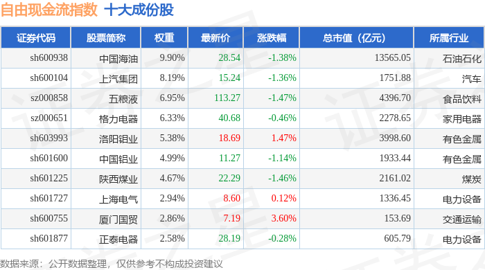 近10日内自由现金流(980092)指数成份股做了调整,新纳入了44只股票,剔除了15只股票。