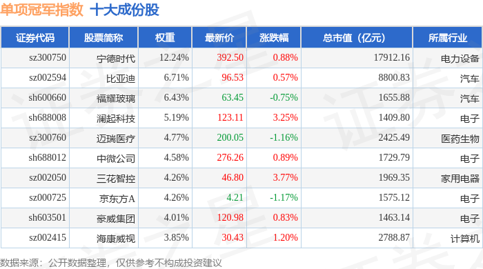 近10日内单项冠军(980150)指数成份股做了调整,新纳入了5只股票。