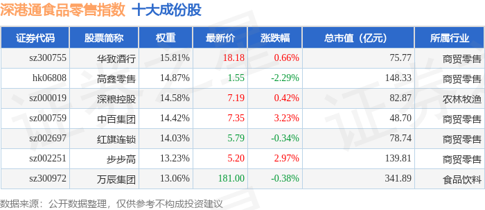 深港通食品零售(983037)指数十大成份股详情如下: