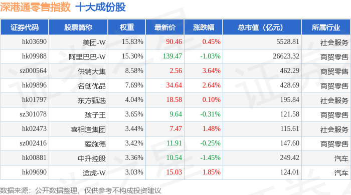 资金流向方面,深港通零售(983073)指数成份股当日主力资金净流入合计503.36万元,游资资金净流入合计1086.56万元,散户资金净流出合计1589.92万元。成份股资金流向详情见下表: