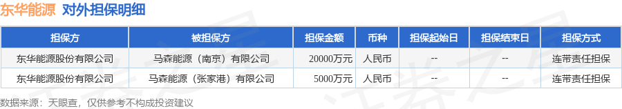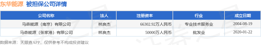 东华能源12月5日披露2笔对外担保,被担保公司2家。对外担保明细如下表: