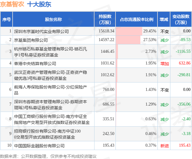 根据京基智农2025年三季报公布的十大股东详情如下: