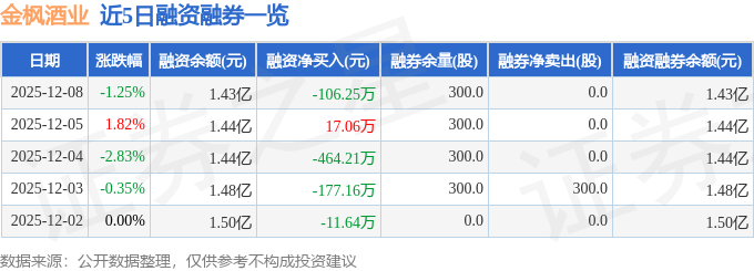 证券之星消息,截至2025年12月8日收盘,金枫酒业(600616)报收于5.53元,下跌1.25%,换手率1.79%,成交量11.97万手,成交额6648.19万元。
