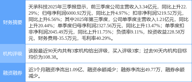 2025年9月15日,华鑫证券研究员任春阳发布了对天承科技的研报《公司事件点评报告:认购产业基金加强半导体布局,AIPCB实现头部客户突破》,该研报对天承科技给出“买入”评级。研报中预测公司2025-2027年净利润分别为1.01、1.58、2.12亿元,EPS分别为0.81、1.27、1.70元,当前股价对应PE分别为108、69、51倍,维持“买入”投资评级。证券之星数据中心根据近三年发布的研报数据计算,该研报作者对此股的盈利预测准确度为99.57%。