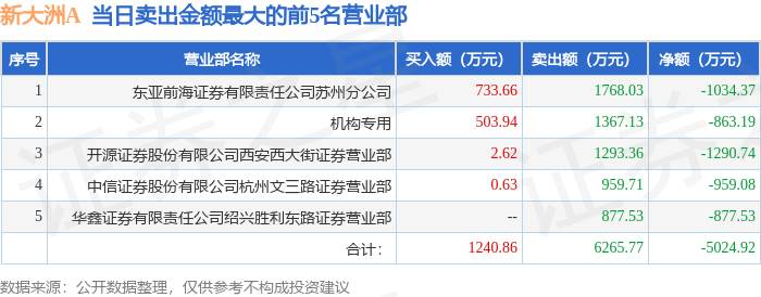 证券之星消息,沪深交易所2025年12月9日公布的交易公开信息显示,新大洲A(000571)因日跌幅偏离值达到7%的前5只证券登上龙虎榜。此次是近5个交易日内第1次上榜。