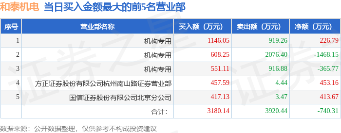 证券之星消息,沪深交易所2025年12月9日公布的交易公开信息显示,和泰机电(001225)因日跌幅偏离值达到7%的前5只证券登上龙虎榜。此次是近5个交易日内第1次上榜。