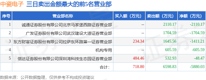 从龙虎榜公布的三日买卖数据来看,机构合计净卖出605.59万元。