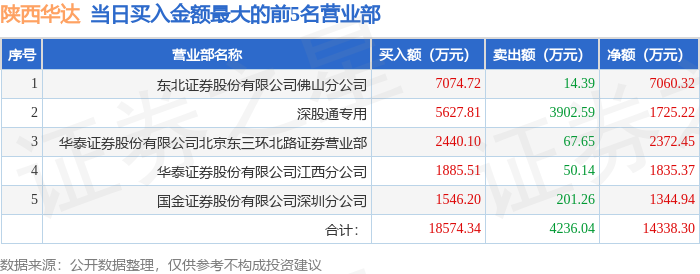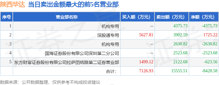 证券之星消息,沪深交易所2025年12月9日公布的交易公开信息显示,陕西华达(301517)因日涨幅达到15%的前5只证券登上龙虎榜。此次是近5个交易日内第1次上榜。