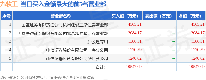 证券之星消息,沪深交易所2025年12月9日公布的交易公开信息显示,九牧王(601566)因有价格涨跌幅限制的日价格振幅达到15%的前五只证券登上龙虎榜。此次是近5个交易日内第2次上榜。