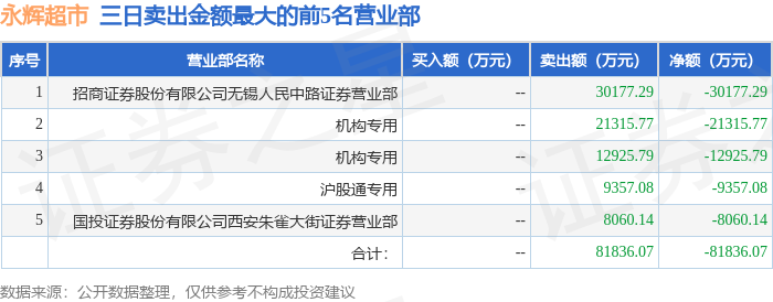 从龙虎榜公布的三日买卖数据来看,机构合计净卖出3.42亿元,北向资金合计净卖出9357.08万元。陈小群、上海超短帮、朱雀大街等知名游资榜上有名。(知名游资陈小群一般指中国银河证券股份有限公司大连黄河路证券营业部席位、知名游资上海超短帮一般指国泰海通证券股份有限公司上海静安区新闸路证券营业部席位、知名游资朱雀大街一般指国投证券股份有限公司西安朱雀大街证券营业部席位,根据市场资料整理,仅供参考)